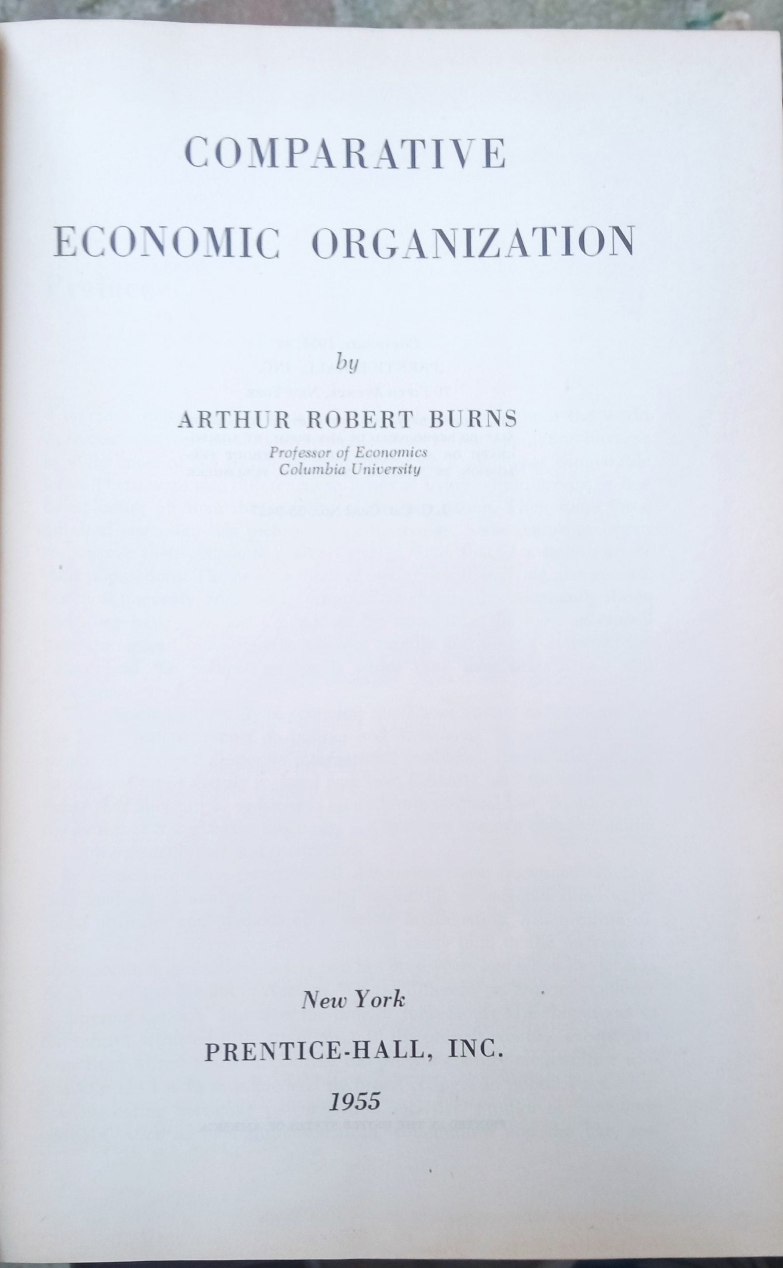 COMPARATIVE ECONOMIC ORGANIZATION/Arthur Robert Burns